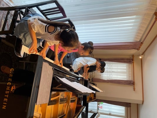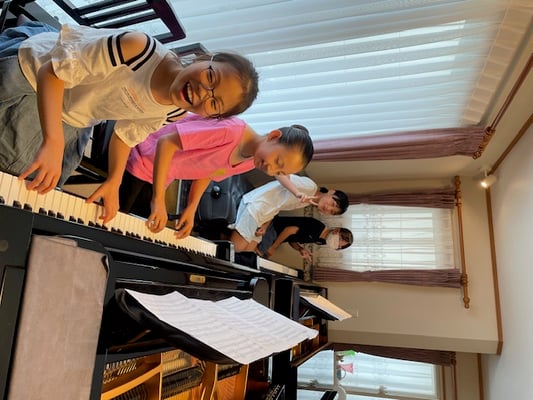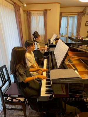 最後の写真は、月一回のペースで行っています、ソルフェージュ・グループレッスンのひとコマです。音楽を多角的に楽しく学べるようにと始めたグループレッスンも、1年半を過ぎました。最近のレッスン内容は即興演奏と聴音。毎回演奏する音階は、弾く順番をジャンケンで決めていて微笑ましいです。音楽をずっと楽しめるようにと願いを込めて、ソルフェージュレッスンを楽しく展開しています。