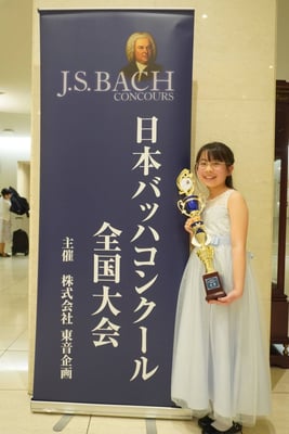 第15回日本バッハコンクール全国大会・小学3、4年の部にて、小学3年生のSちゃんが金賞を受賞されました。おめでとうございます!!全国大会の前日がレッスン日でしたが、予選の時から更に進化した演奏に仕上がったと感じました。Sちゃんの頑張りに心から拍手を送ります。