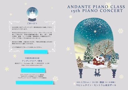 2025年1月25日、ベヒシュタイン・セントラム東京ザールに於いて、第15回発表会を開催いたしました。小学1年生Mちゃんの演奏するギロック作曲ソナチネ全楽章から始まり、音大生のRちゃんのショパン作曲スケルツォ第4番で終演となりました。生徒さん皆さん、忙しい日常の中でピアノの練習時間を捻出し、コツコツと努力を積み上げた熱演でした。