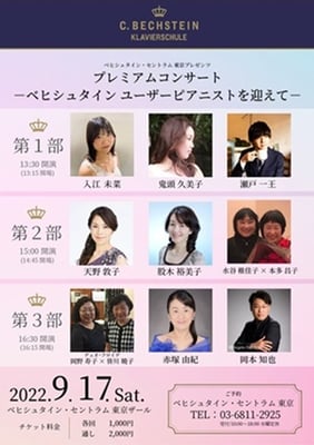 さて、2週間後になりましたが、9月17日にベヒシュタイン・セントラム東京ザールにて、プレミアムコンサートに出演します。